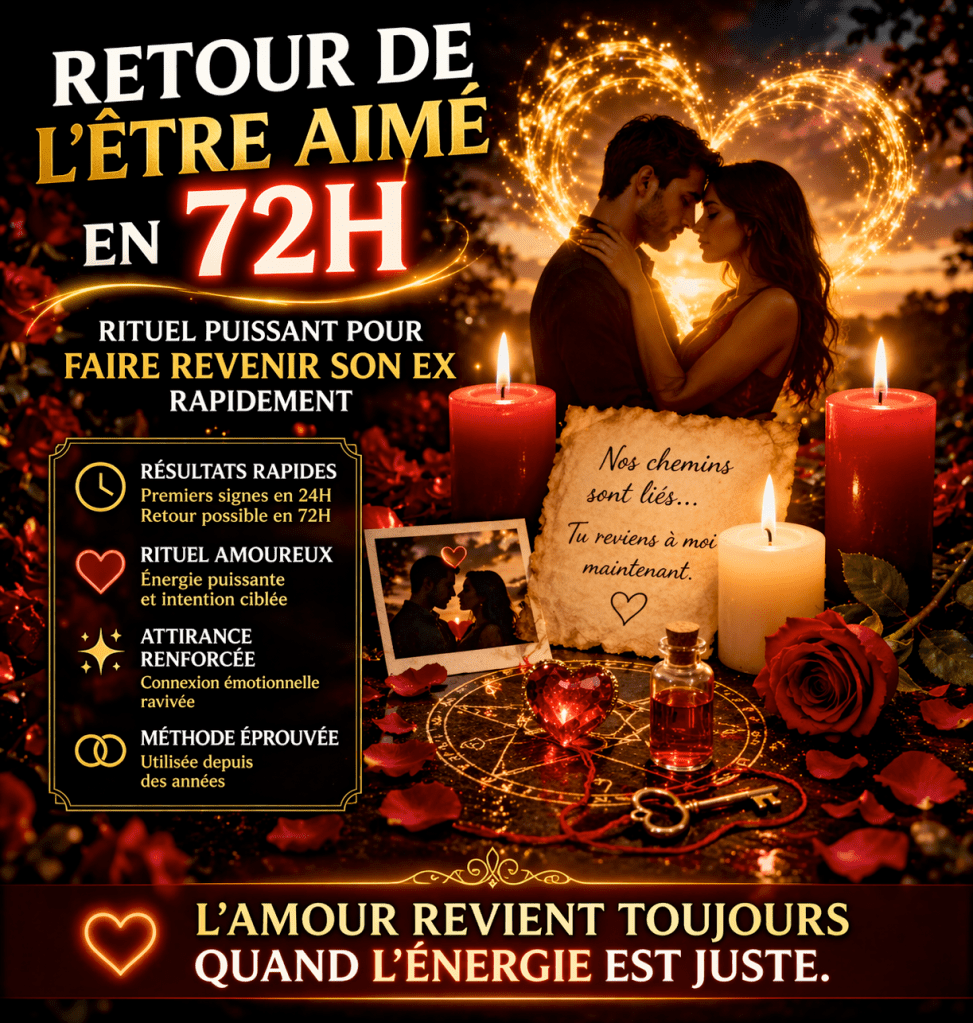 retour rapide ex, faire revenir son ex en 72h, rituel amour puissant, retour affectif rapide, récupérer son ex rapidement, rituel retour amoureux, faire revenir un homme vite, faire revenir une femme rapidement, reconquête amoureuse rapide, magie amour efficace, rituel retour immédiat, récupérer son ex sans supplier
